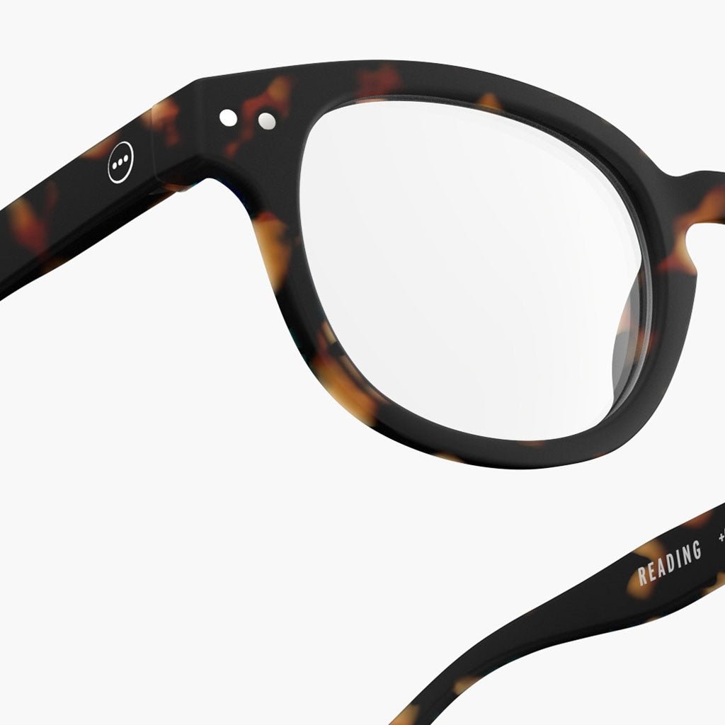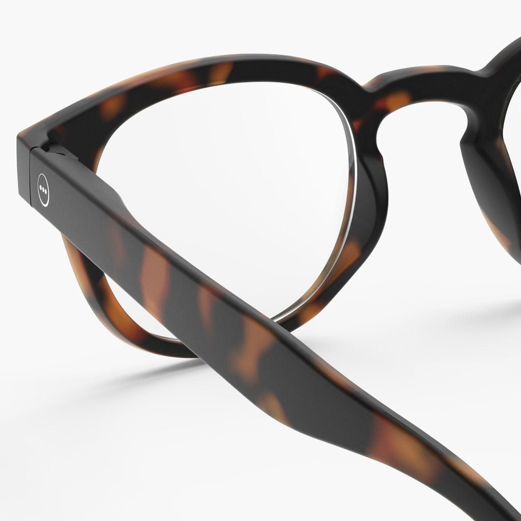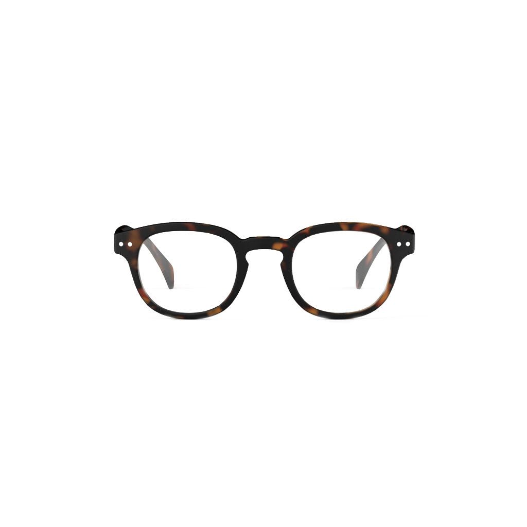 #C Tortoise Readers suit round, oval, and heart-shaped faces adding structure to round faces, boldness to oval faces, and balance to heart shapes by drawing attention upward. Finished in a classic tortoiseshell color.