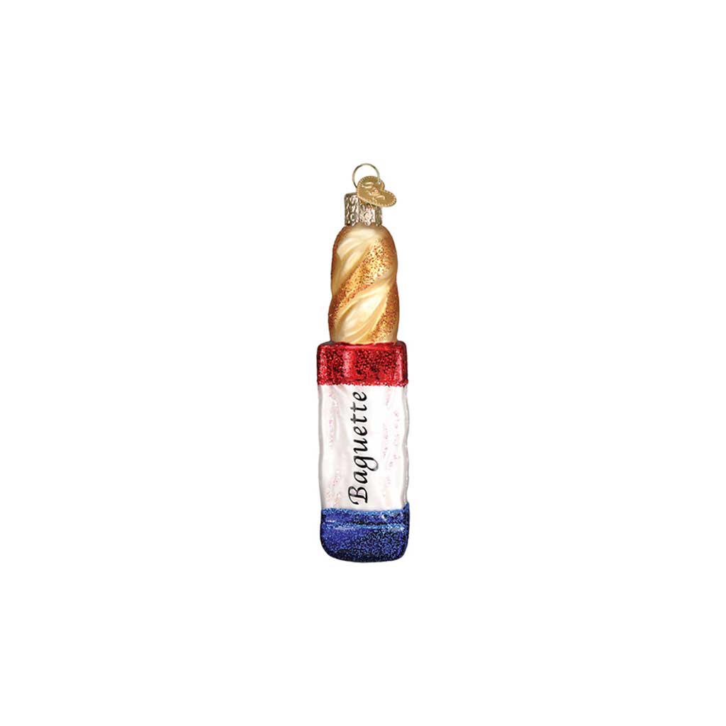 Straight from the bakery to your Christmas tree, this glass baguette ornament brings a taste of Provence to the holiday season. Hand-painted and glittered, this French classic is sure to make any foodie smile.