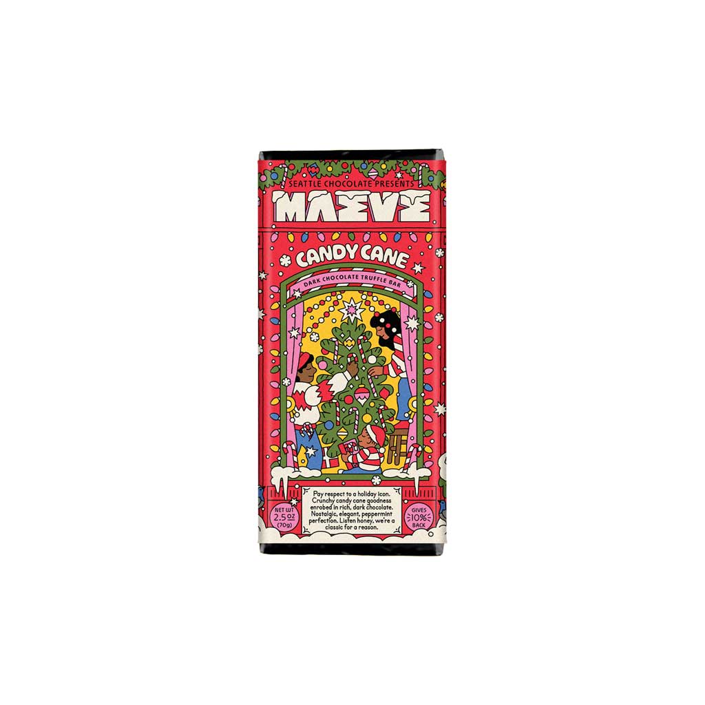 Celebrate a classic holiday combination with Maeve's Candy Cane Truffle Chocolate Bar. With crunchy peppermint bits meeting indulgent dark chocolate, this chocolate bar packs bright, festive flavor in each bite.