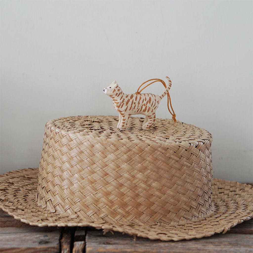 This charming paper mache cat ornament is handcrafted in India from upcycled cotton fabric waste from the fashion industry. Shaped and painted by hand to resemble a tabby cat, it's 100% biodegradable, making it a more sustainable alternative to plastic Christmas decorations.