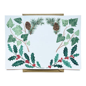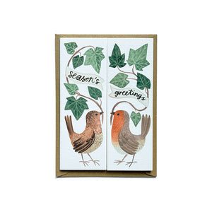 Two sweet birds share a message of Season's Greetings on this illustrated card by Eleanor Percival. The unique gate-folded card opens to display more nature-inspired illustrations on the inside, with a space for your message.
