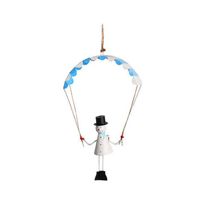 Soar through holiday skies with this Snowman Paraglide ornament. Carefully hand-painted, this metal paraglide carries a cheery snowman, bundled up in festive winter attire, on a merry adventure among the clouds—bringing a playful touch to your Christmas tree.