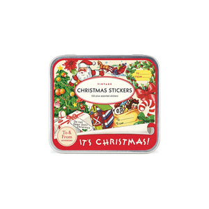 Spread holiday cheer with these Vintage Christmas Stickers—a collection of festive glittered sticky labels perfect for adding a merry message to your presents, cards, or creative projects. Featuring vintage designs from the Cavallini archives, these stickers bring a nostalgic touch to your holiday wrapping and come neatly nestled in a decorative tin.