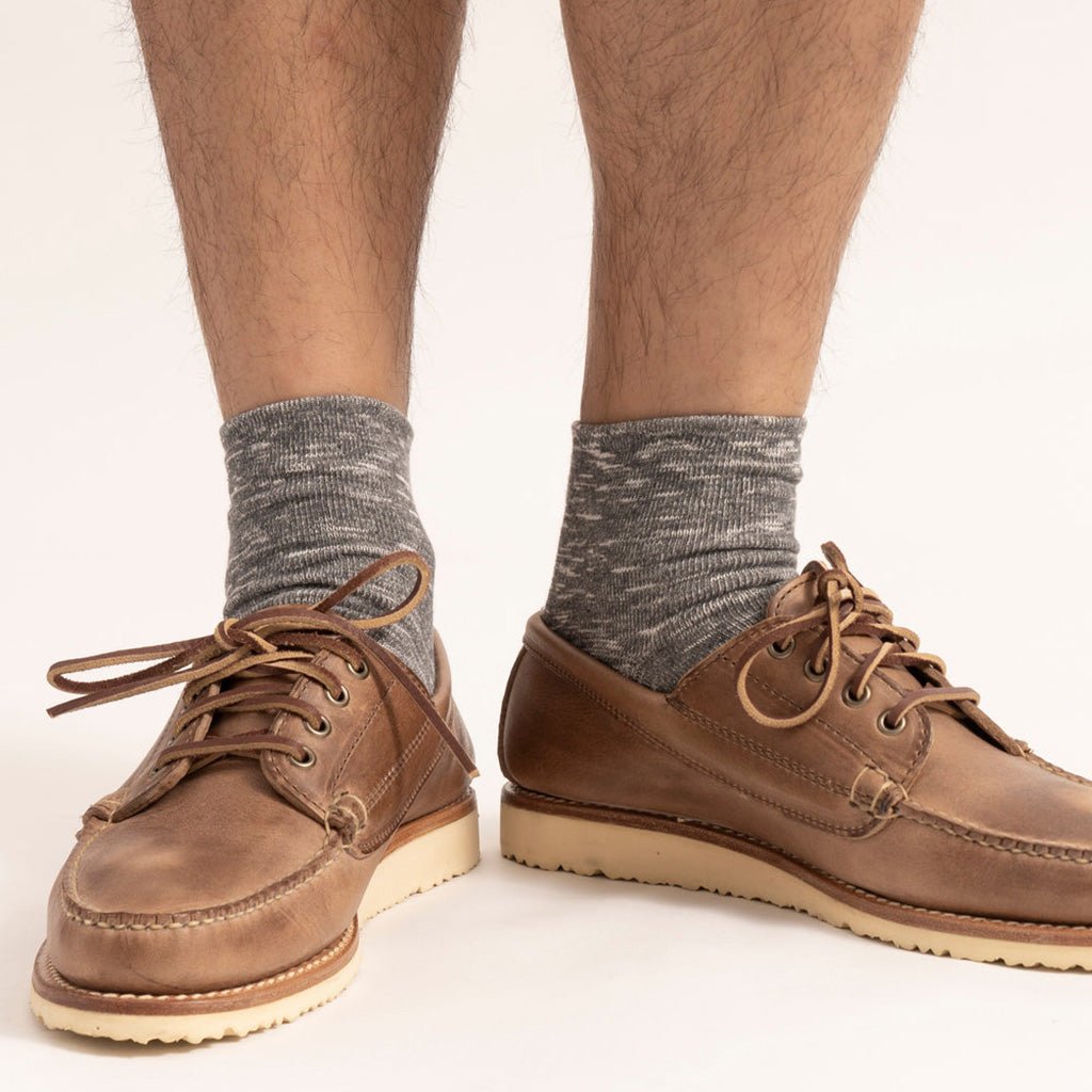 The Random Plait Quarter Crew Sock is knit in the USA from a custom blend of combed slub yarn and recycled cotton. The result is a sock that is comfortable, colorful, and unique.