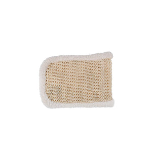Use: For wet exfoliation, bring the mitt into the bath or shower and wet it thoroughly. Use with or without soap. Rub in small circles, moving toward the heart. To dry brush, use a dry mitt in long sweeping strokes on the arms and legs keeping the direction of the stroke towards the heart.