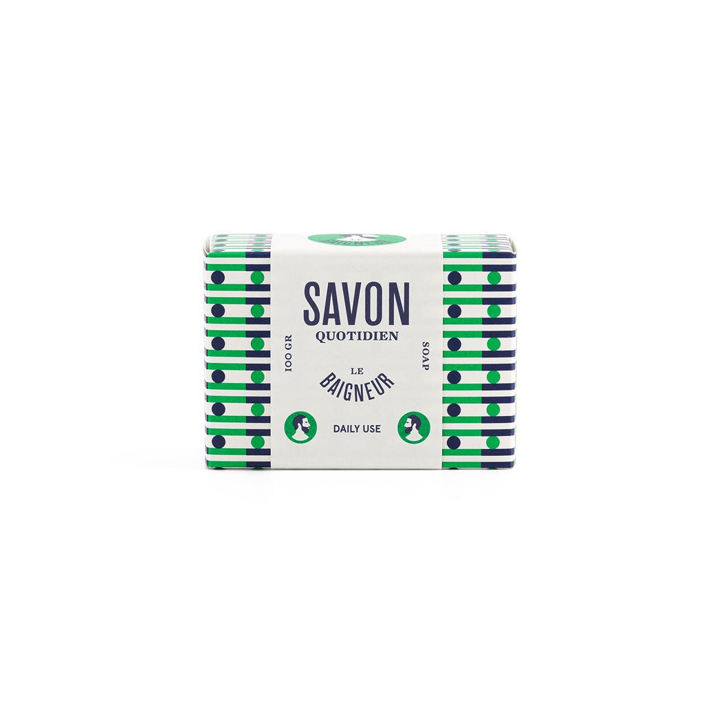 Handmade in Paris, La Baigneur's cold saponified Daily Use Soap is enriched with sunflower oil and scented with cedarwood, rosemary, and lavandin essential oils. Perfect for the body, face, and hands, it leaves skin hydrated, soft, and nourished. This soap was the first soap made by Le Baigneur's founder, Fabien, who uses it as his everyday soap, hence the name!