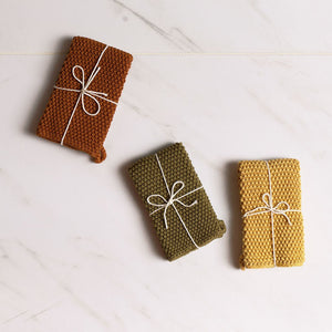 Made with 100% organic cotton (GOTS certified) that is unbleached, Berg’s knitted face cloths are naturally dyed with plants. They are knit in a seed stitch pattern, which gives the cloth a gentle texture, useful for exfoliation. A crocheted hanging loop is convenient for air drying.
