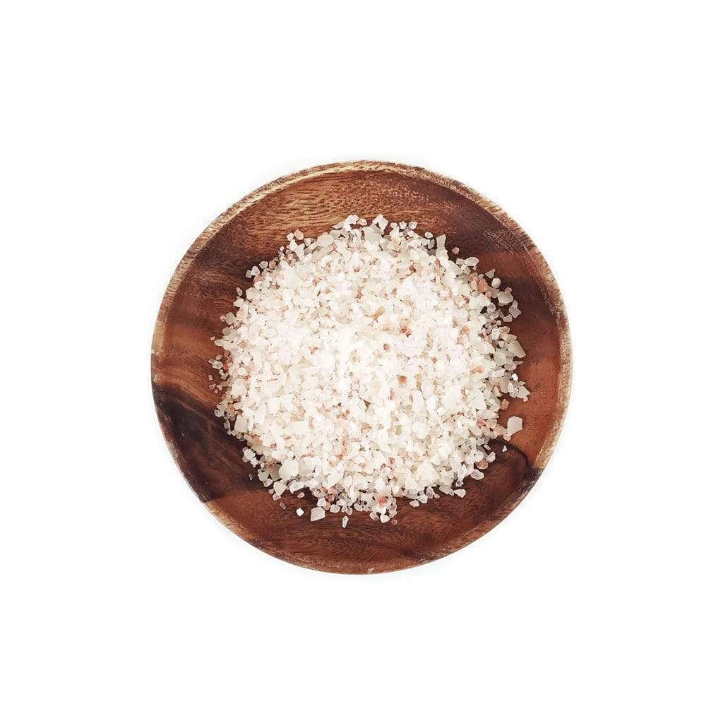 Materials: Himalayan pink salt, magnesium chloride hexahydrate flakes, essential oils