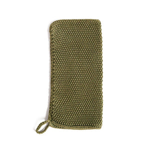 Made with 100% organic cotton (GOTS certified) that is unbleached, Berg’s knitted mitts are naturally dyed with plants. They are knit in a seed stitch pattern, which gives the cloth a gentle texture, useful for exfoliation. A crocheted hanging loop is convenient for air drying.
