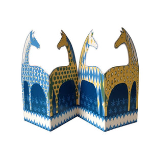 This folded concertina card is litho-printed on both sides in England using vegetable-based inks that are friendly to the environment. The card stock is substantial so the card stands up easily on its own, serving dual-duty as a greeting and a decoration. There is space along the bottom edge for a written message, and of course an envelope is included.