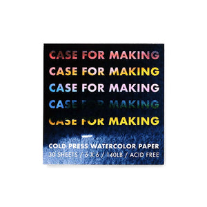 Case for Making's Classic Watercolor Paper features 30 sheets of cold-pressed watercolor paper. Crafted with a soft, textured surface, the paper offers excellent absorbency and is ideal for a range of watercolor techniques. Its natural white hue enhances vibrant pigments, while the lightfast and age-resistant properties ensure lasting quality. Plus, it's made in Germany at an eco-friendly mill using vegan sizing treatment!