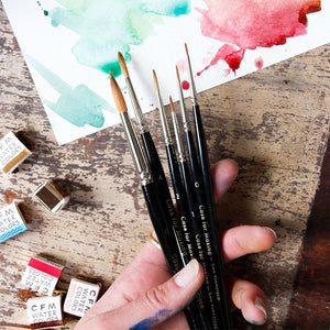 Case for Making's Round Brushes are imported from Germany and feature a synthetic bristle tip. Available in seven sizes, these round brushes are incredibly versatile. Depending on the pressure and angle of application, they can go from a thick swatch to a thin line in a single swipe. The size 8 is great for kids!