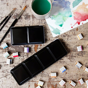 Case for Making's Small Watercolor Palette is a trusty go-to that fits just enough paint (14 half pans), making it ideal for painting on-the-go or for smaller projects. Paints are not included - choose your favorite colors to build your own custom palette! There is a finger loop on the bottom of the palette.