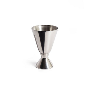 A weighted base gives some heft to this heavyweight jigger. The seamless stainless steel construction ensures maximum durability.  Markings on the inside are in milliliters and ounces.