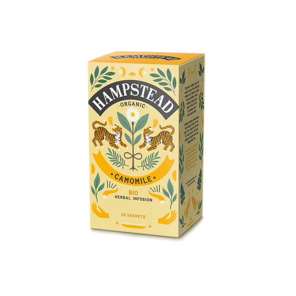 Hampstead Tea's Organic Camomile tea is made with carefully gathered golden chamomile flowers that are grown in fair trade, biodynamic tea gardens then gently tumbled together and packaged in plastic-free, compostable bags.