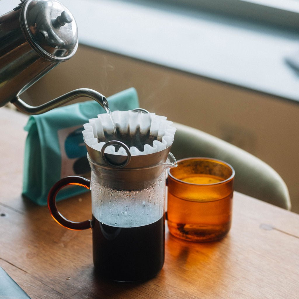 Use:  The dripper is a stainless steel pour-over filter that uses flat-bottomed paper filters. This offers a more forgiving process and more even extraction than what you get with cone-shaped droppers. Small auto-drip filters from your local grocery store will fit the strainer well.
