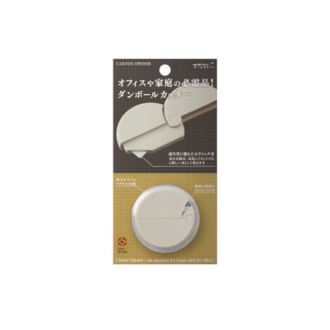 A handy and portable carton opener featuring a replaceable ceramic blade. The plastic case protects the blade when closed and opens to 180 degrees. A neodymium magnet inside the plastic case allows it to attach to refrigerators and metal items like desks and doors.