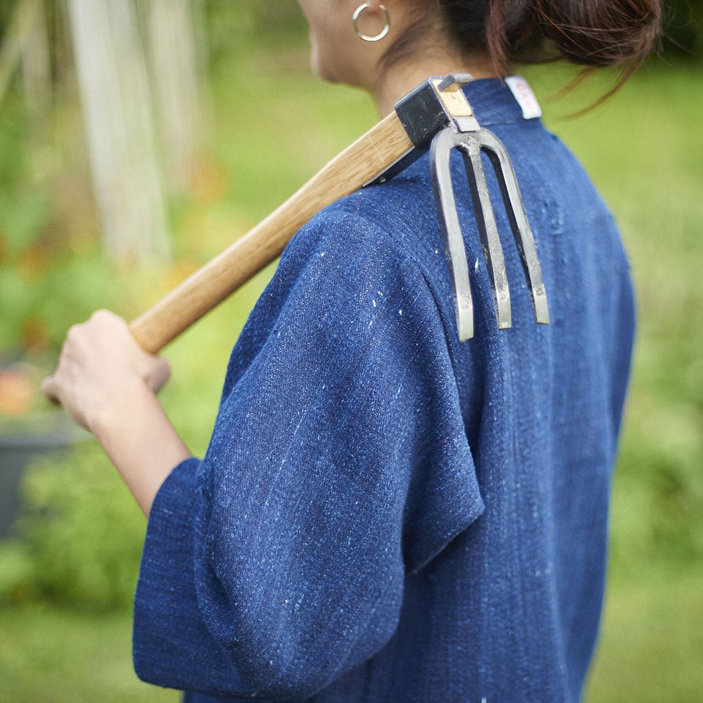 A heavy-duty Japanese 3-pronged hoe for digging, weeding, and planting. Good in the vegetable garden for preparing seed beds, and great for pulling out roots, clumps, and rocks.