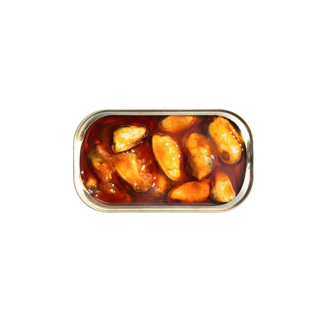 Fishwife’s delicious Mussels in Sweet Pepper + Garlic are soaked in a tomato-based sauce with red pepper, garlic, smoked paprika, cayenne, and spices. They're bold, balanced, and the sidekick to any toasted baguette.