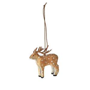 Click, clack—one of Santa’s helpers is coming through! Handcrafted in Kashmir, India, this delicate paper-mache reindeer adds a Nordic touch to your holiday decor. Hand shaped and painted, it’s crafted from upcycled cotton fabric waste from the fashion industry and is 100% biodegradable.