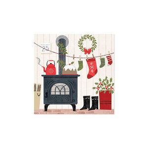 The presents have all been delivered and Santa and the elves are warming up by the cozy hearth in this pop-cup card from Up With Paper. A real string clothesline and a touch of glitter bring the scene to life. With space on the back for you to write your message and a unique three-dimensional design, it's a card that will bring holiday joy long after it's been opened.