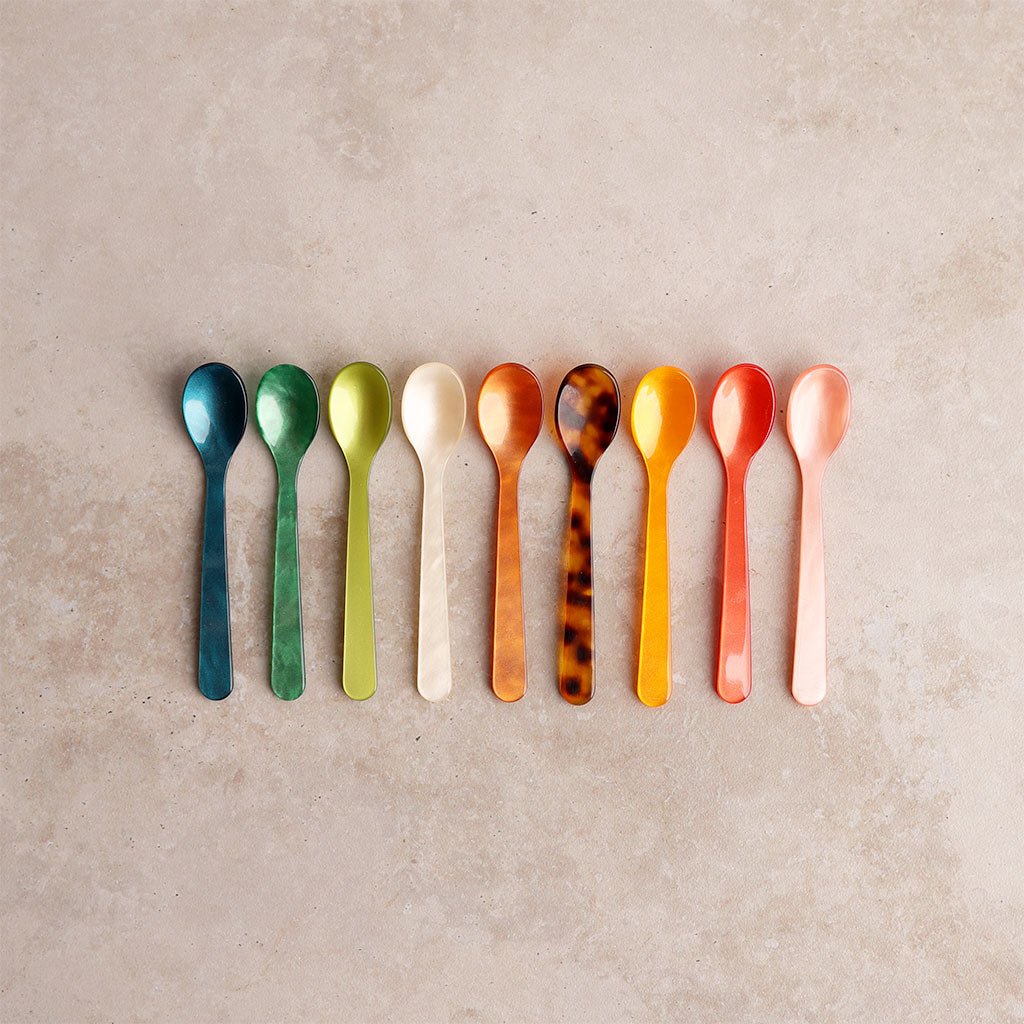 A small spoon ideal for dispensing spices or seasonings. Use it for serving condiments, dips, and jams, or for stirring espresso. Handcrafted in Germany, this little spoon is available in a rainbow of colors and will add color to your kitchen! Sold individually.
