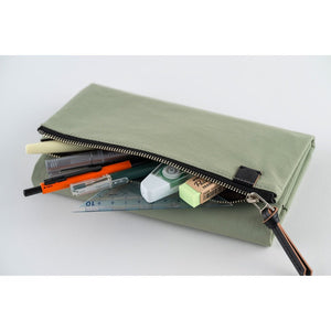 Extend the life of your Hobonichi Weeks with the Tragen cover, which adds plenty of pockets for storing journaling supplies. The Oakmoss shade is a soft green color. This nylon tri-fold design closes with a button, features a zippered pocket for pens and stationery, and includes an interior pen hook for secure storage.