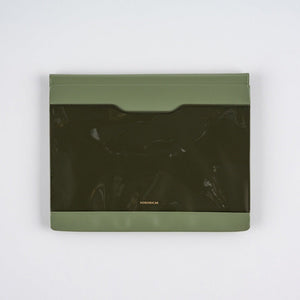 Keep your stationery supplies handy with this A6-sized olive green Alettone document case by Hobonichi! With ample space to hold small documents, stickers, writing utensils, and your A6 Hobonichi Techo, this Alettone case is a practical way to keep your everyday items easily accessible.