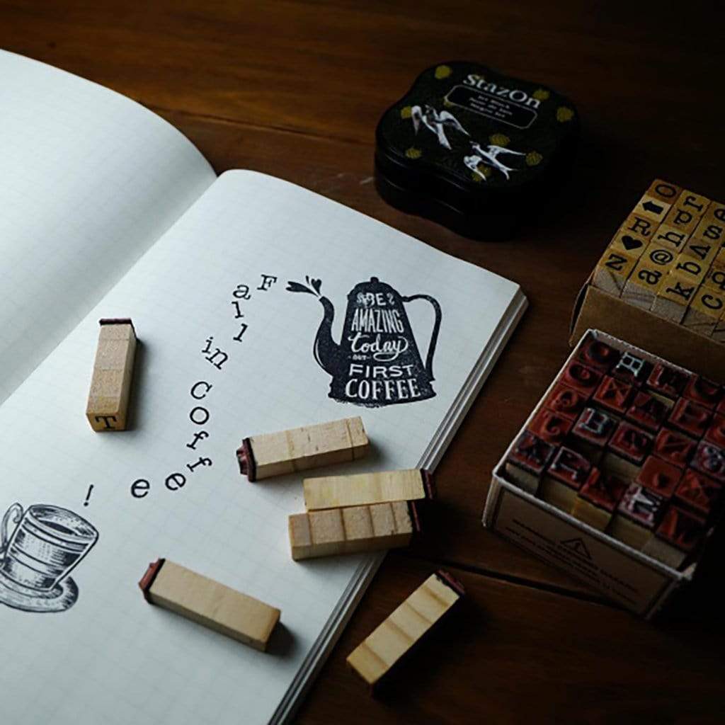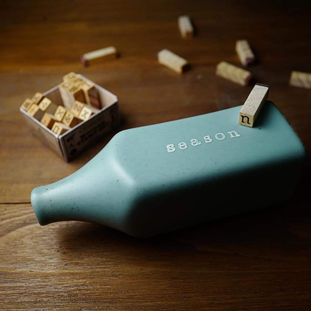 A set of wooden and rubber alphabet stamps by Tools to Liveby. Available in uppercase or lowercase letters.