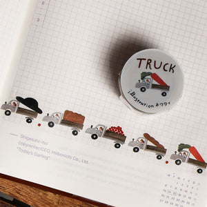 Decorate journals, scrapbooks, or greeting cards with Truck Washi Tape from Cozyca. This transparent roll of decorative tape, created in collaboration with Japanese artists Necktie, features playful illustrations of trucks hauling various foods and animals.