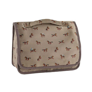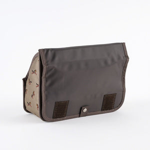 The Hobonichi Stappo is a standing pouch that can be used to organize all kinds of small items around your desk. In collaboration with Bow & Tie, this Galloping Horses desktop bag features necktie fabric woven with motifs of running horses on a beige background, creating a playful pattern with a soft, textural feel.