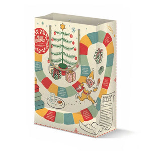 Celebrate cozy game nights gathered around the table with this Holiday Board Game gift bag from Wallflower Paper & Party. Featuring a vintage-inspired design, this bag showcases a festive game board that takes you on a merry adventure through Christmas Eve night—complete with wrapped gifts under the tree, warm cookies and milk, and even a mischevious elf.