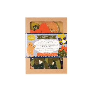 These delightful greeting cards are perfect for spreading cheer! Isatopia's Holiday Collection includes six cards featuring three charming die-cut designs: mistletoe, gingerbread man, and gift. Crafted from sustainable materials, each collection includes matching gold envelopes adding an elegant touch to your holiday greetings.