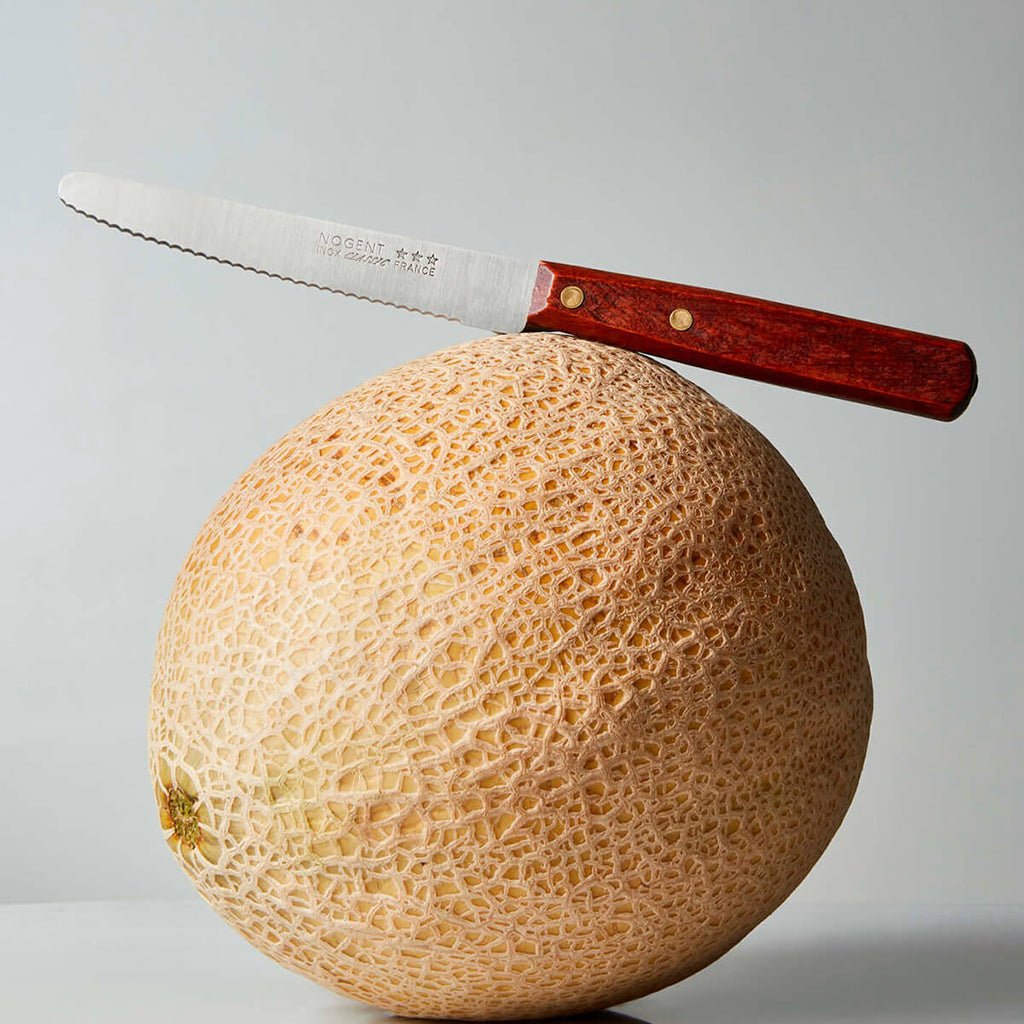 Care: Hand wash only and dry thoroughly immediately after use to prevent rust spots from forming. Do not place in the dishwasher. Avoid soaking your knife in water to prevent warping of the wooden handle. For more detailed maintenance tips, please refer to Nogent's Care Guide.