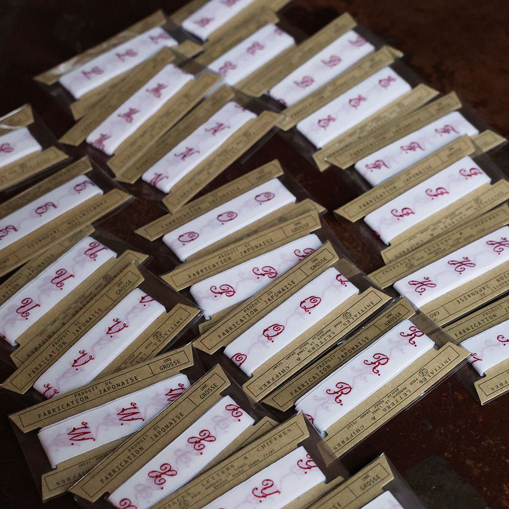 Classiky's initial tape is based on vintage French laundry tape designs and can be used to personalize clothing and other items. Whether its use is decorative or functional, the tape is easy to attach with needle & thread.