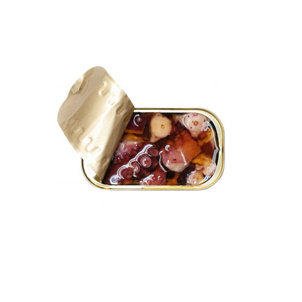 Caught in the waters of the Atlantic, this octopus is mixed only with olive oil and garlic. Naturally low in calories, octopus is also rich in Vitamin B12, which is important for brain function and memory.