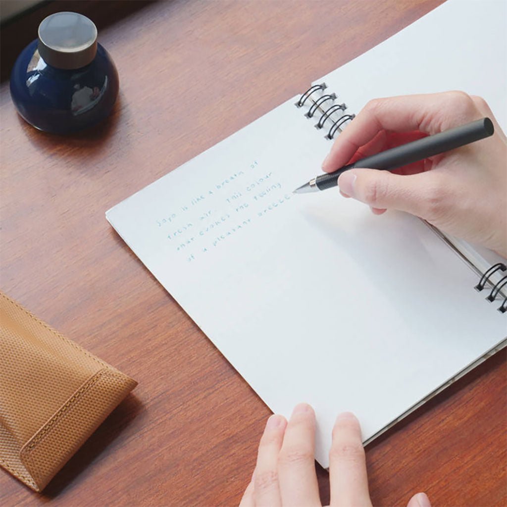 The convenient B6 size fits in most bags and the spiral binding opens perfectly flat for ease of use. Premium fountain pen-friendly paper is compatible with any writing instrument, and the split binding allows space for your hand to rest while writing without touching the rings.