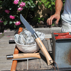 Stretching nearly 20 inches in length when open, this knife truly is giant when compared to the rest of the Opinel line. While not commonly used in every day activities, folks have been known to use this knife while barbecuing - you can easily cut, poke, and flip steaks on the grill and the beechwood handle does not transfer heat. It's also prime for slicing watermelon! This size features the Virobloc® safety ring, which locks the blade in place when open.