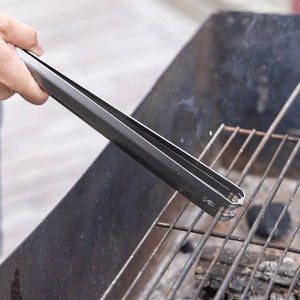 Stainless steel with a stonewashed finish, these XL tongs are conveniently long for cooking over a fire or grill. With notched tips for easy maneuvering of food and a grill lift built into the end of the handle, these are an essential grilling tool!