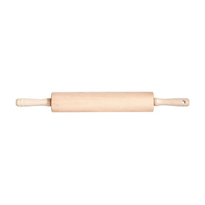 The rolling pin includes edge grain construction that highlights the natural beauty of the wood, showcasing long, uninterrupted grain patterns that add an aesthetic appeal to its practical design.