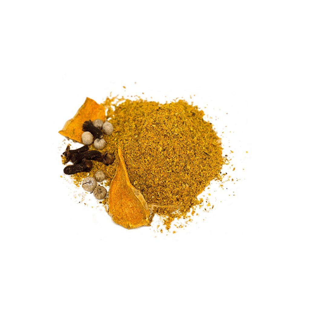 Ingredients: turmeric, cinnamon, coriander, black pepper, fennel, cumin, mace, ginger, nigella, cardamom, white pepper, clove