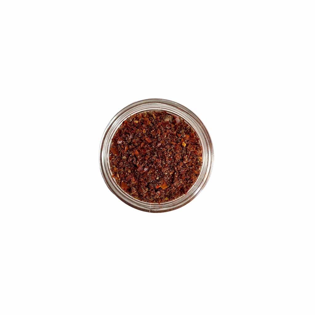 Ingredients: Gochugaru chilies, black garlic, honey granules (sugar, honey), scallion, sea salt, black pepper, ginger