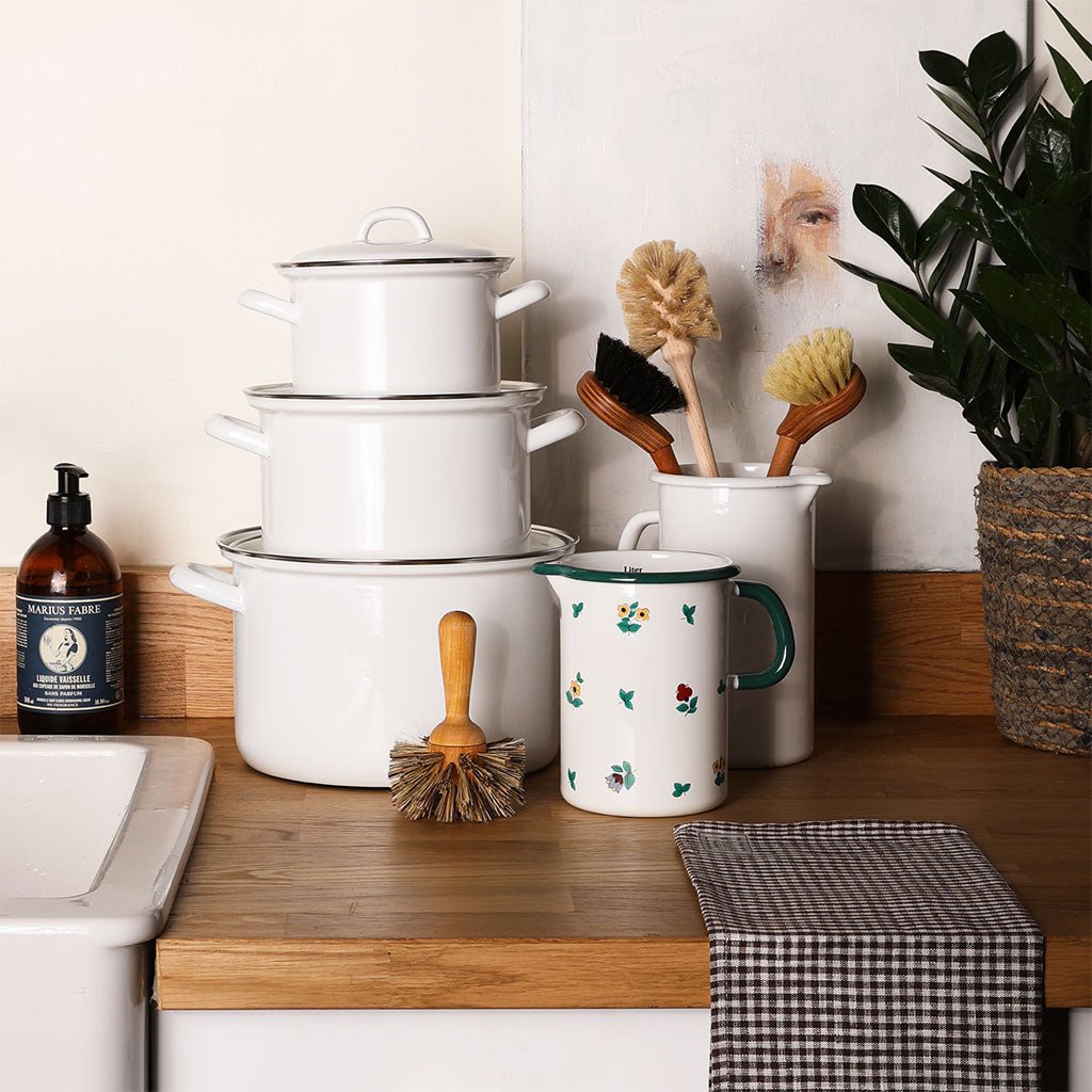 Today, the company is ninth-generation family run and remains the only porcelain cookware company in Austria. They make all their enamelware in a carbon-neutral facility using locally-generated hydro power from the Ybbs river.