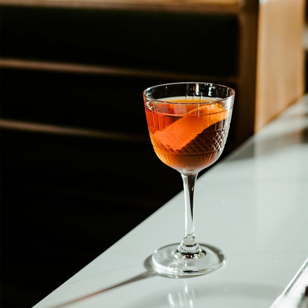 Our Tremont Nick & Nora Glass complements the rest of our Tremont Glassware Collection, with crystal-cut sides that catch and reflect light, for beautiful cocktails and beverages. Made of lead-free, ultra-clear crystal, its colorless clarity enhances the vibrant hues of your beverages, adding an elegant touch to every sip.
