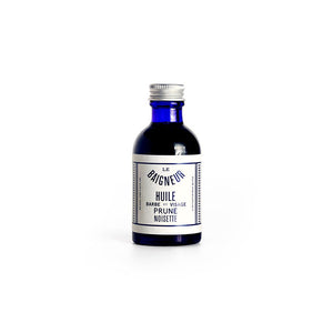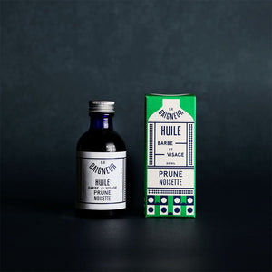 Plum oil: Derived from the almonds of the plums of Gascony, this oil with a powerful and unparalleled smell is produced only in the south-west of France. Naturally rich in antioxidant vitamin E, its rich texture provides a deep hydration of dry skin and beards.