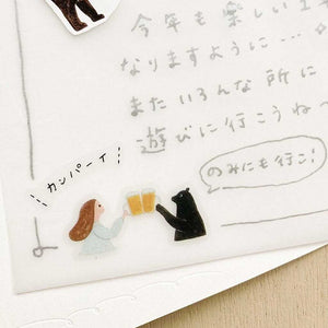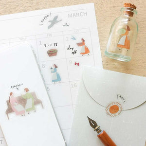 Adorn your journal spreads, add to a scrapbook, or decorate a greeting card with these transparent Cozyca sticker sheets. Designed in collaboration with Japanese illustrators Necktie, these sticker sheets are available in two designs—one featuring motifs of a birthday celebration, and the other with characters completing everyday tasks and activities.