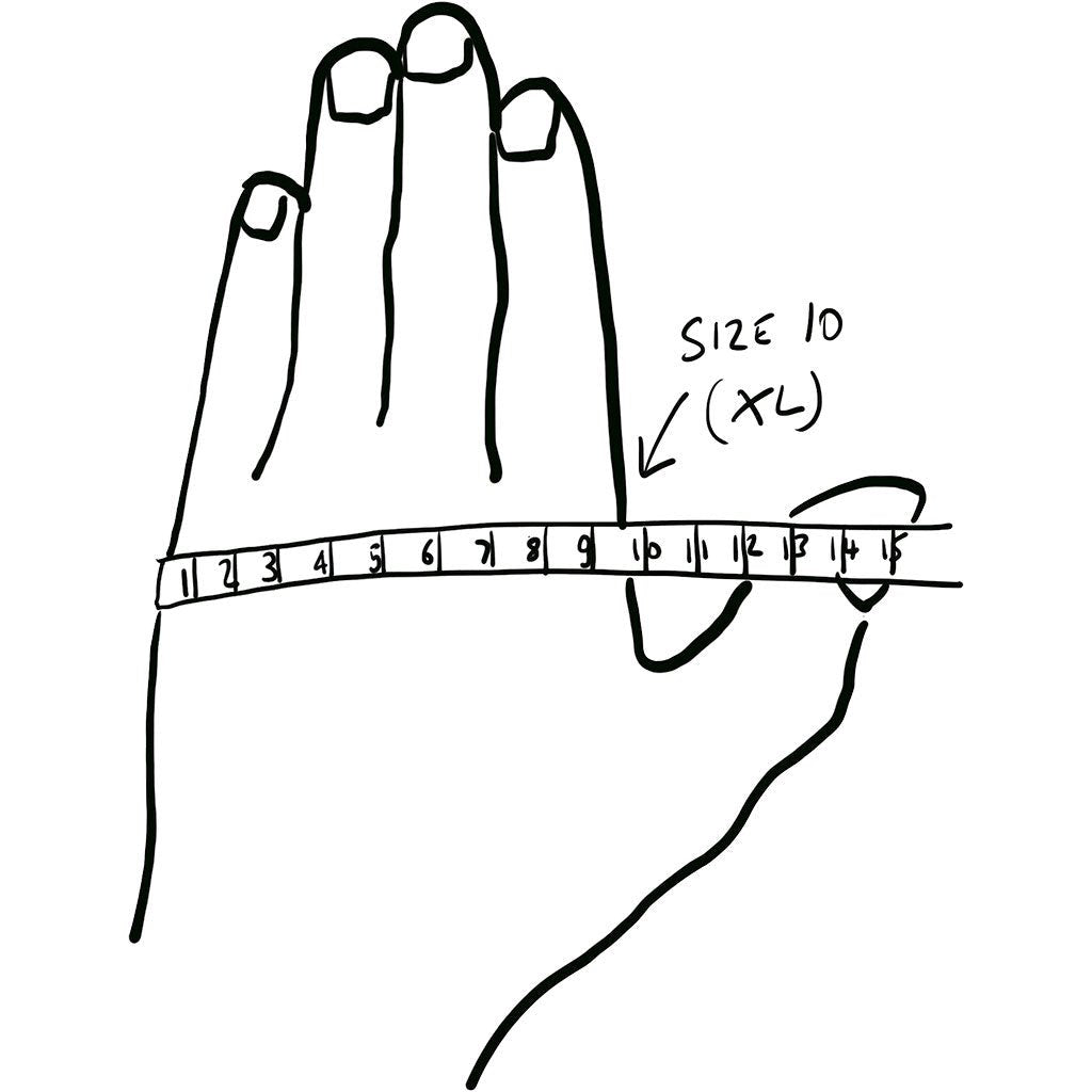 To determine sizing: Measuring for these Niwaki gloves is a little different than other gloves. Rather than measuring your hand circumference, they recommend using a metric tape measure or ruler to measure the width of your hand across its widest part, which is usually the knuckles.