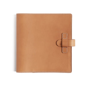 The smooth, natural colored leather will take on a patina as it ages. A flap closure, pen loop, and inner pockets add functionality to this handsome notebook.