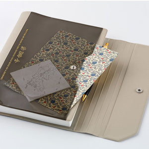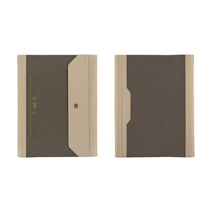 Alettone: Gray combines a soft, warm tone with subtle taupe undertones—quiet and timeless. On the cover, it bears the message: “Writing by hand is like sending your mind on a journey.” Made from lightweight PVC, this tri-fold cover closes securely with snap buttons and includes an interior hook to hold a pen by its clip.