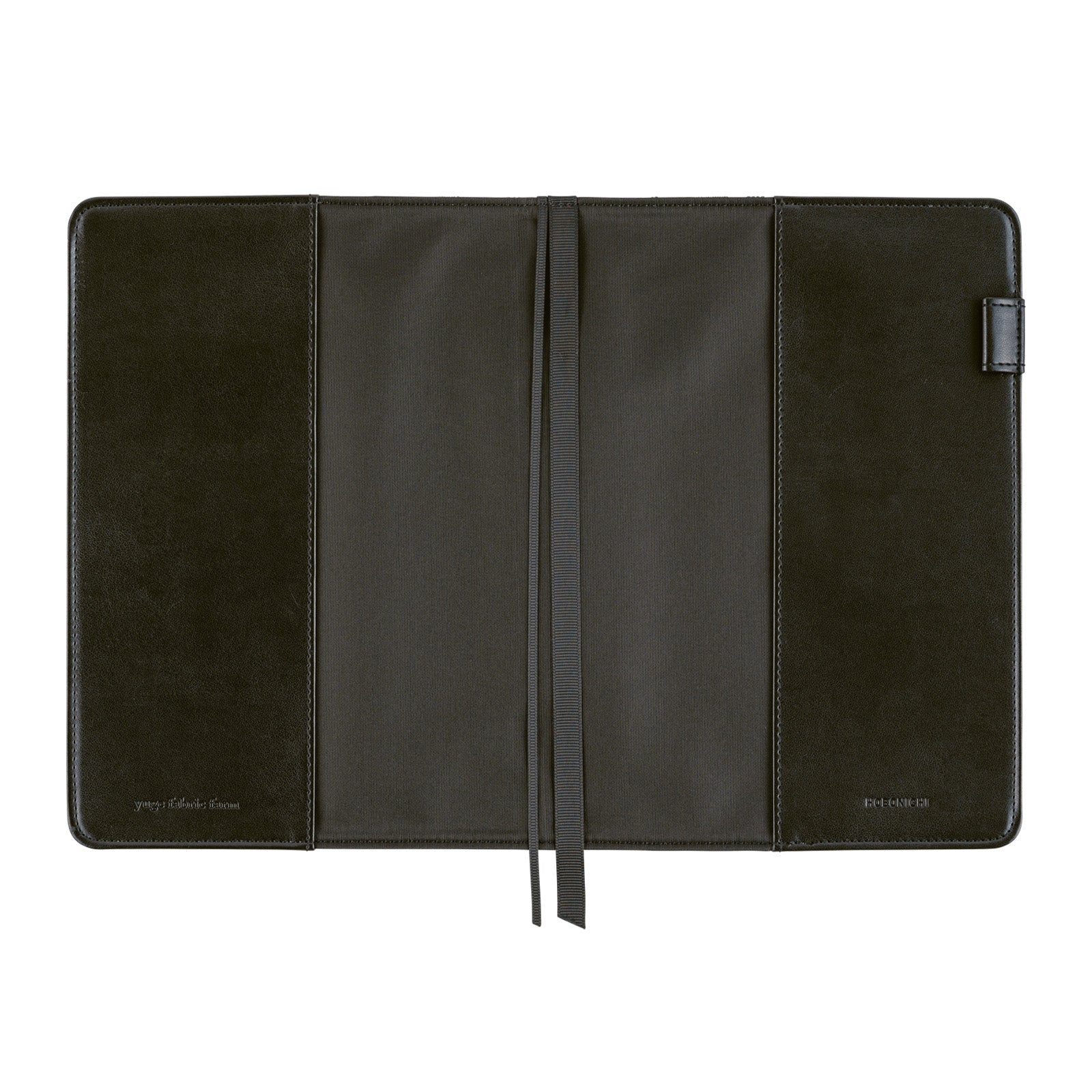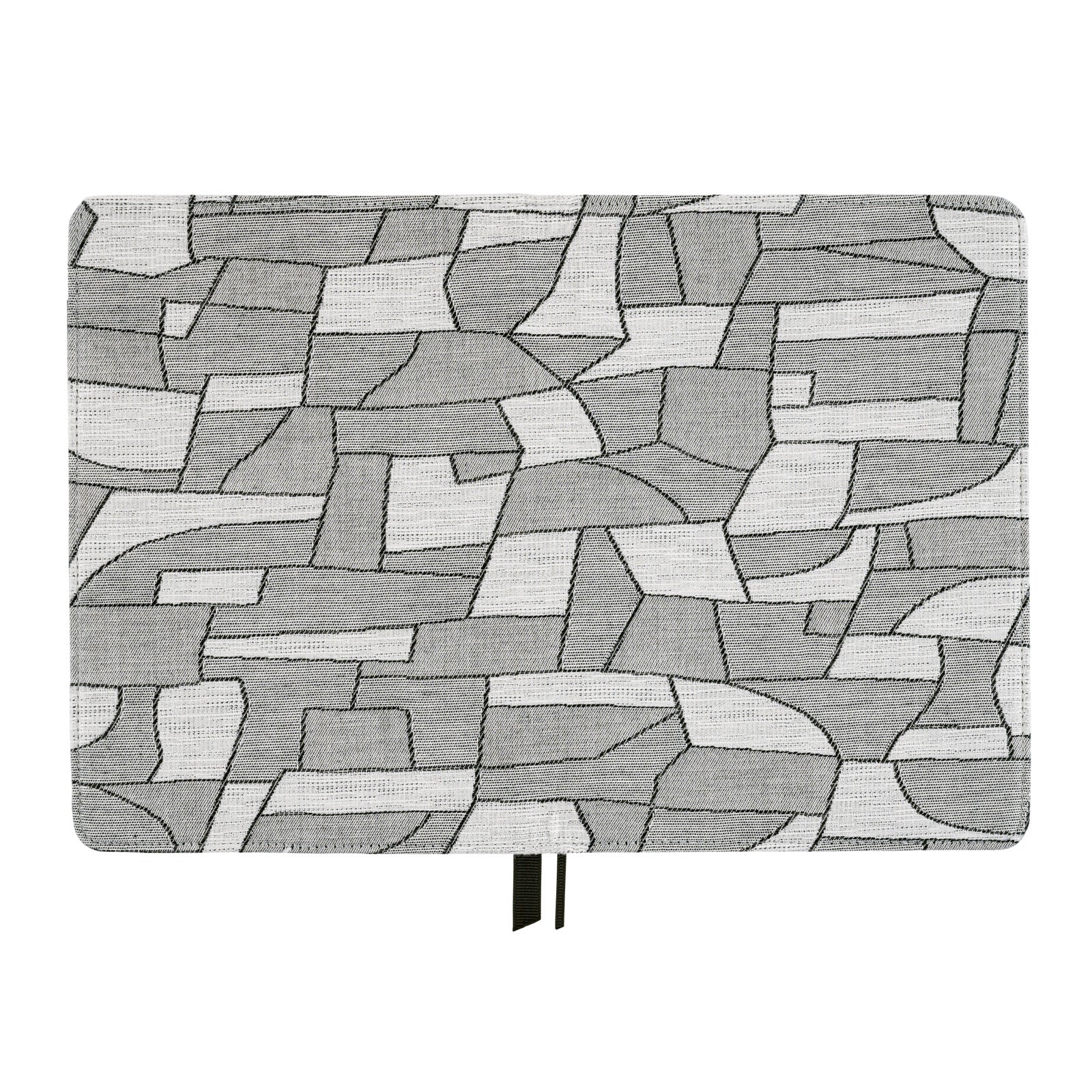 A fabric cover designed to fit the Hobonichi Techo Cousin A5. This cover is made with brocade fabric with a "kagome" design which resembles a stone wall. The cover material was designed for kimonos and obis and has a beautiful, calm gray tone that makes it appealing for any user. In order to present a simple, streamlined shape, the pen clip on this cover is on the inside.